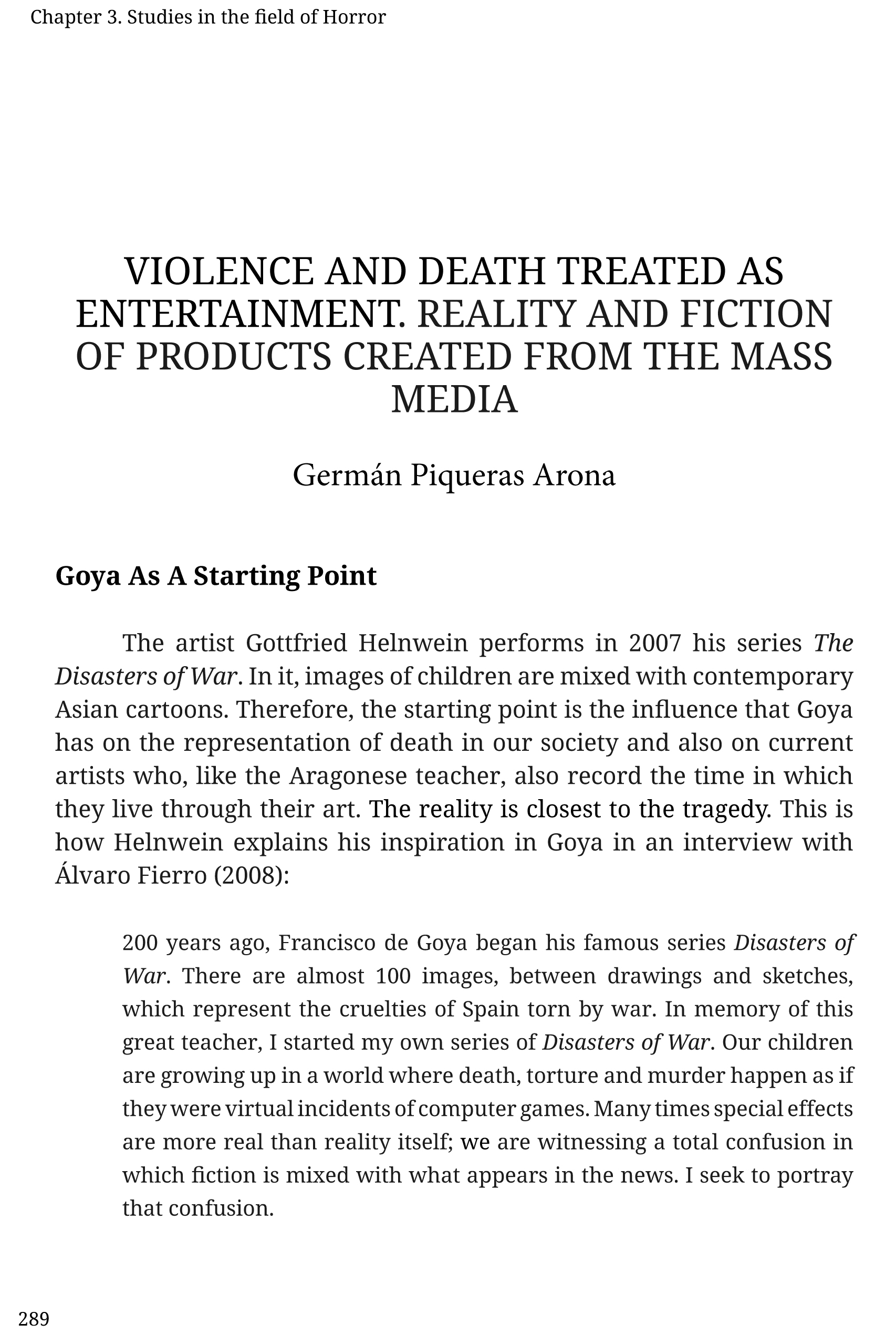 VIOLENCE AND DEATH TREATED AS ENTERTAINMENT. REALITY AND FICTION OF PRODUCTS CREATED FROM THE MASS MEDIA